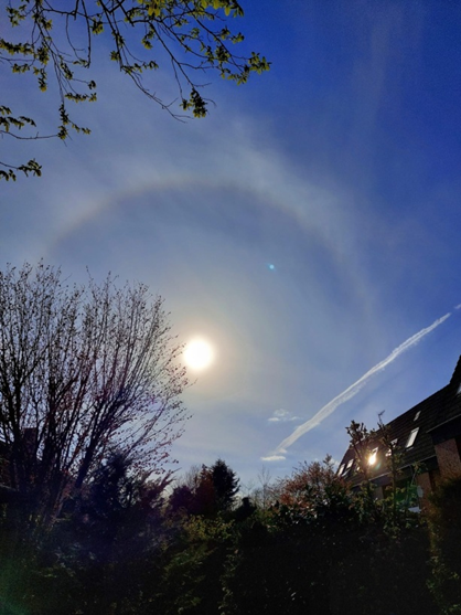 Ein Halo kann visuell sowohl um die Sonne als auch um den Mond entstehen. Es gibt viele verschiedene Haloerscheinungen. Am häufigsten erscheint ein Ring um Sonne oder Mond, der vom Beobachter ca. 22° von Sonne oder Mond entfernt zu sehen ist. In der hohen Atmosphäre müssen dafür tiefe Temperaturen herrschen, damit sich Eiskristalle bilden können, an denen durch Brechung und Spiegelung diese Phänomene entstehen können.