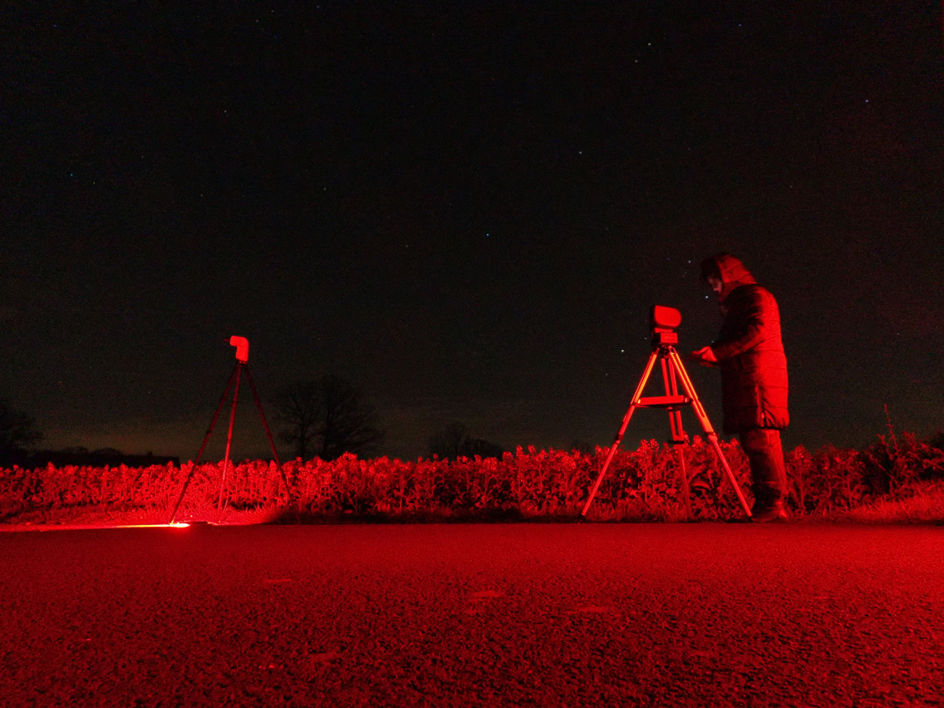 Nur im Osten, etwa zwei Handbreit über dem Horizont, ist ein Streifen klarer Himmel zu erkennen. Also in die Klamotten, Ausrüstung ins Auto, und los geht’s. Weit muss nicht gefahren werden, da ein Platz mit passender Sicht und Himmelsrichtung schon Tage vorher ausgekundschaftet wurde. Diesmal sind es ca. 5 Kilometer bis Osterberg (Nähe Hasbergen). Aufgestellt werden ein Seestar S30 und ein S50.