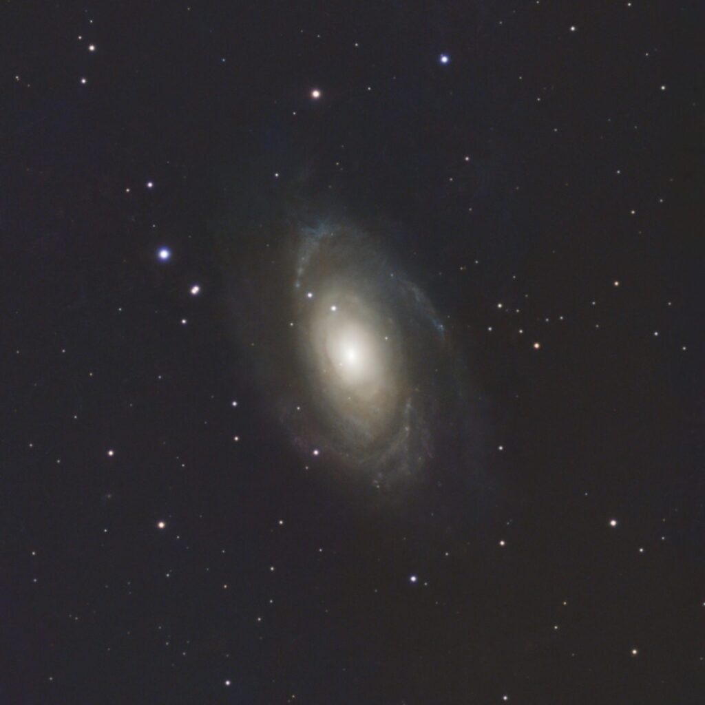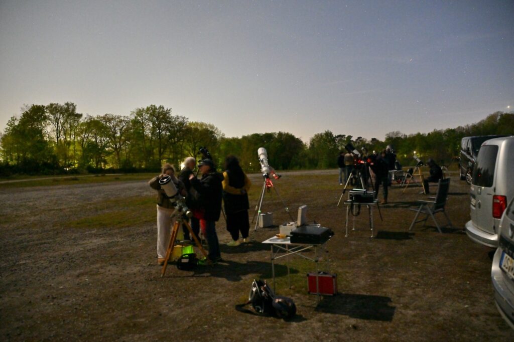 Jetzt gegen 22 Uhr zeigt die Vosslinke ihre starke Seite. Sie ist dunkel wie kaum ein anderer Ort in Osnabrück. Der Mond mit all seinen Kratern und vielfältigen Strukturen beeindruckt wie immer. Venus im großen Teleskop zeigt eine ähnliche Phase wie unser Mond. Das erstaunt. Jupiter in jedem Teleskop lässt mit den Streifen auf seiner Oberfläche und seinem „Mondballett“ eine für uns auf der Erde kaum vorstellbare Größe erahnen. Das Mehrfach-Sternsystem Castor ist der erste Halt außerhalb unseres Sonnensystems. Es folgen die beiden Kugelsternhaufen M3 und M13 in riesiger Entfernung, geheimnisvoll schön. Währenddessen arbeitet eines unserer Teleskope automatisch und erstellt ein Bild der noch viel weiter entfernten Galaxie M81 im Sternbild Große Bärin. Das alles nehmen unsere Besucher mit, als sie gegen 23 Uhr die Vosslinke verlassen. Vielleicht dürfen wir sie bald wieder zu einem weiteren astronomischen Erlebnis bei unseren Sternstunden am Piesberg begrüßen.